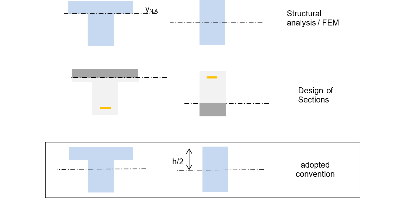 A geometric convention is still necessary for implementing the model. We propose that the reference horizontal axis of the beam always be placed at mid-height of the formwork.