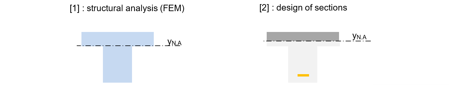 For this study devoted to the axial behaviour of flexural elements, we therefore abandon the default [1]–[2] Eurocode sequence and adopt a single modelling approach in which the input data include not only the formwork geometry but also the reinforcement distribution.