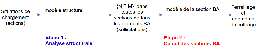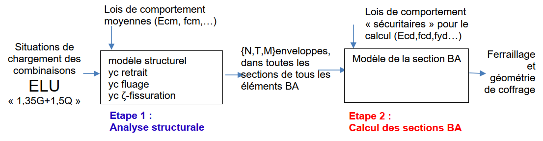 Revenons donc sur le principe de calcul des structures à l’eurocode 2, fondé séquentiellement sur 2 étapes.