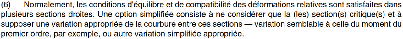 - de l'autre côté, le ε aux deux extrémités de la section permet d'obtenir immédiatement la courbure de la section en chaque abscisse, qu'il suffit d'intégrer 2 fois pour récupérer la déformation finale et vérifier l'ensemble des conditions limites en déplacement, et donc également les efforts de 2nd ordre.